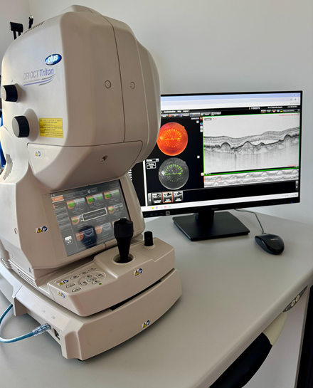 L’OCT (Tomografia a Coerenza Ottica) è un esame diagnostico non invasivo e indolore che utilizza onde luminose per ottenere immagini ad alta risoluzione delle strutture oculari, in particolare: